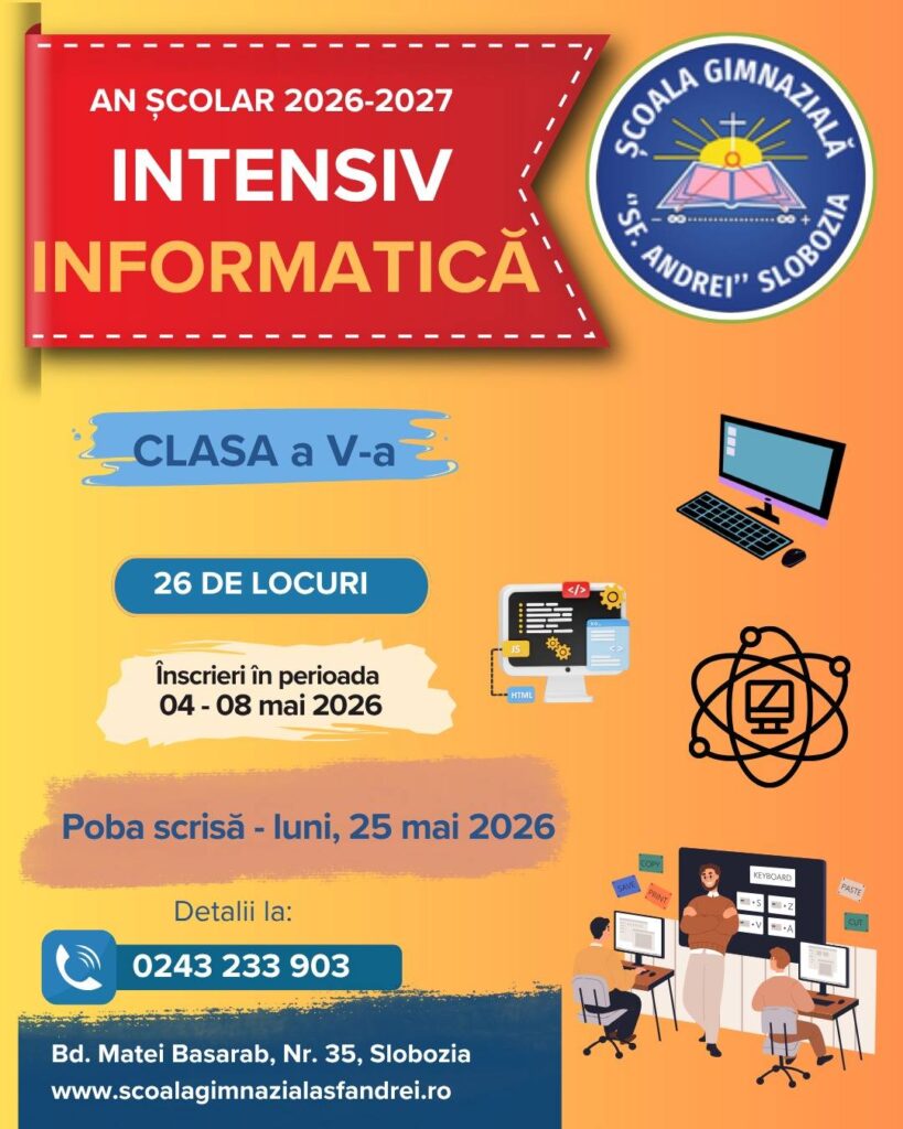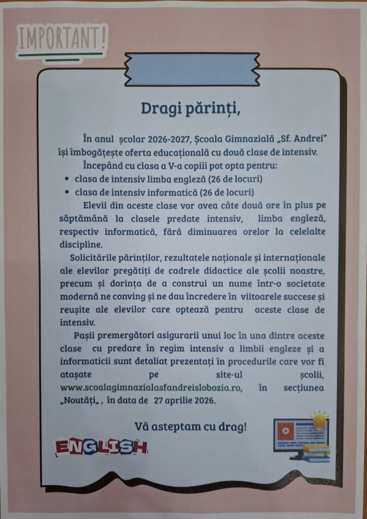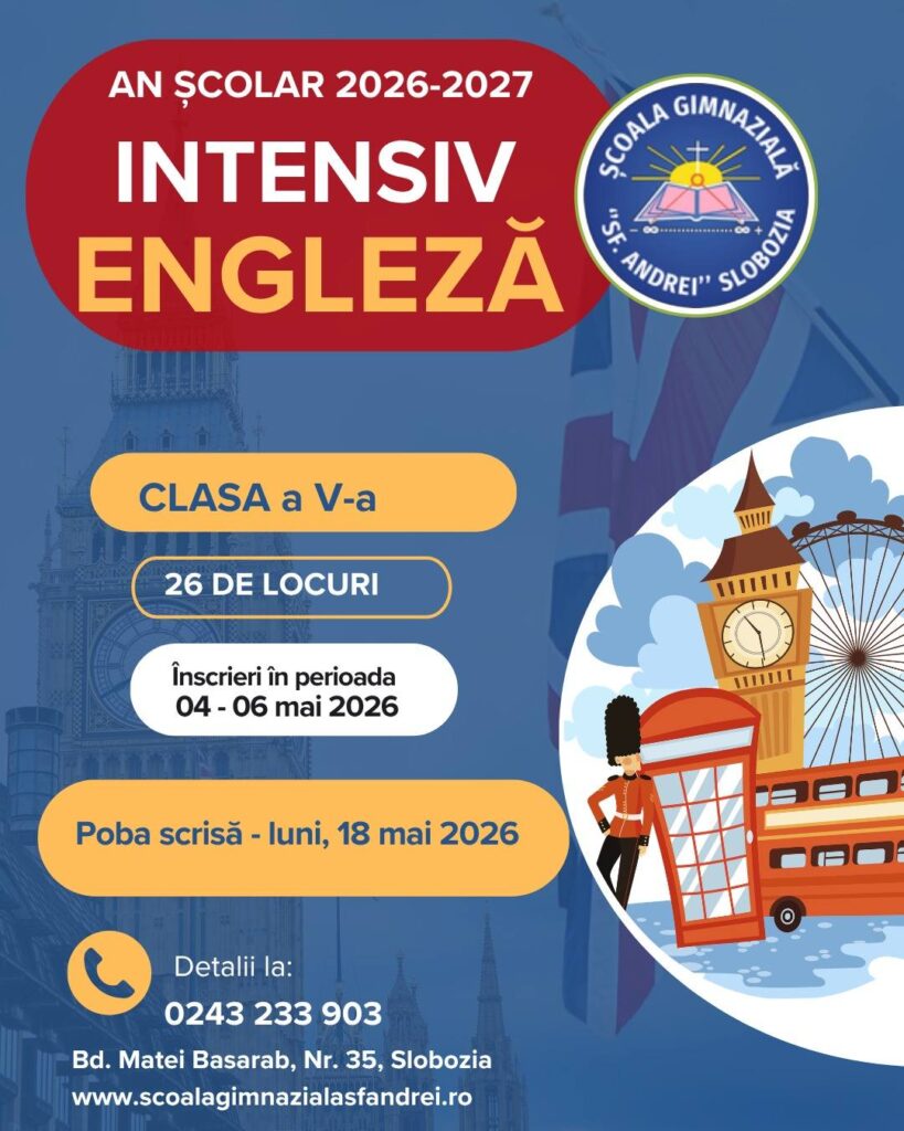 Admitere clasa a V-a intensiv, an școlar 2026-2027